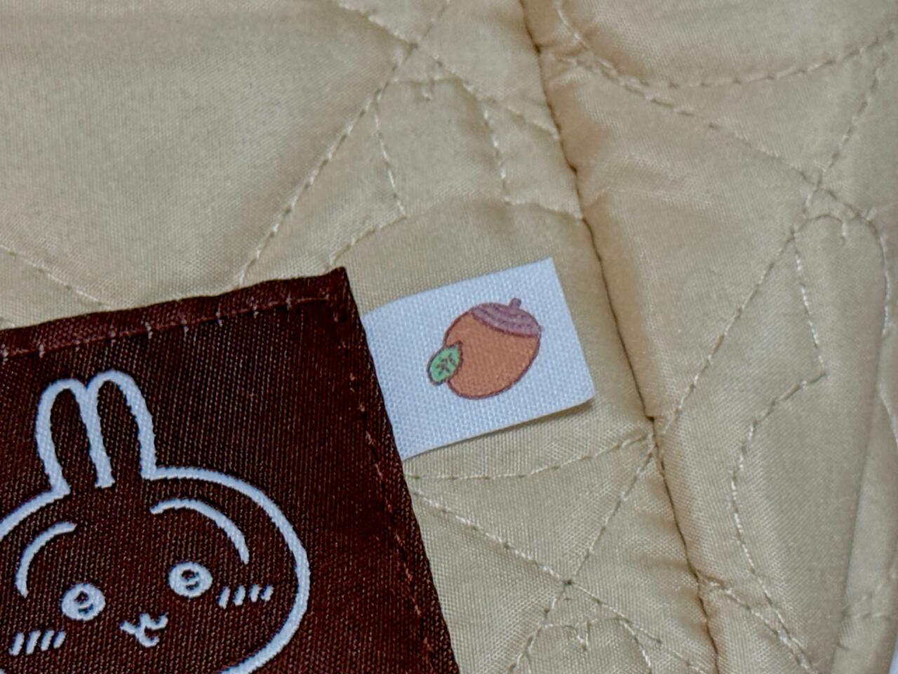 右下部にはシックなブラウンのうさぎのお顔の織りタグ付き。小さなどんぐりの織りタグもついており、うさぎらしさが満載です。