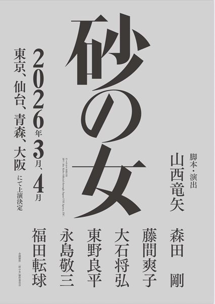 すべて見る安部公房の名作小説『砂の女』の舞台化が決定。2026年3月から4月に東京、宮城、青森、大阪の4都市で上演される。