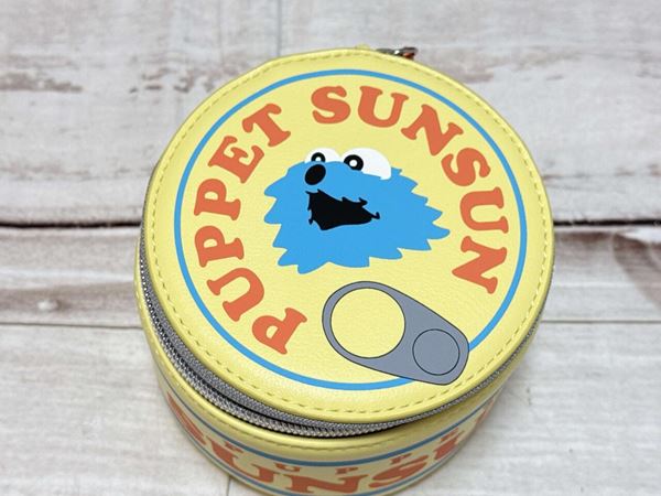 「ポーチ パペットスンスン 1」は、まるで缶詰のようなまんまるラウンド型のポーチ!