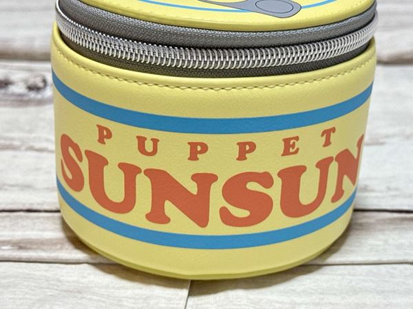 蓋部分にはスンスンのイラストアートが、蓋と側面には「PUPPET SUNSUN」のロゴがプリントされています。蓋には缶詰のプルトップがプリントされているところもGood!