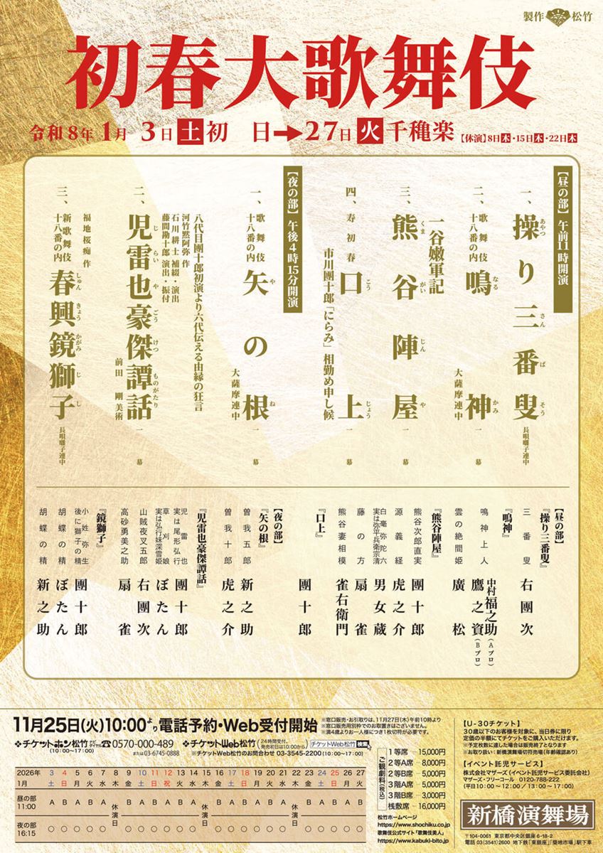 2026年1月に新橋演舞場にて上演される『初春大歌舞伎』。
