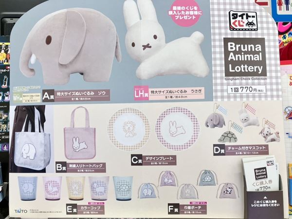 くすみカラーで彩る秋色ギンガムチェックがテーマの「タイトーくじ ブルーナアニマル」(1回税込み770円)。A賞から“LH(ラストハッピー)賞”まで、ハズレなしのかわいさなんです。
