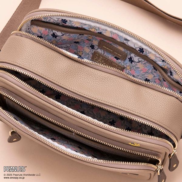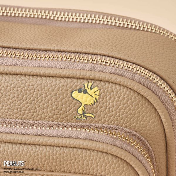 「リュック」は、『PEANUTS』のやさしい世界観をイメージした、コーディネートにも馴染みやすい落ち着きのあるグレージュカラー。ウッドストックと見つめ合っているスヌーピーの様子が刺繍でデザインされています。