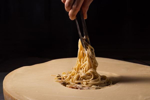 ・ポルチーニ茸と百合根のカルボナーラ グラナ・パダーノ仕上げ