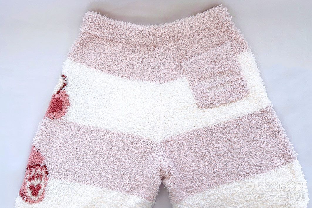 パンツは、ピンクと白の太ボーダー、左もも付近にメイちゃん。後ろにポッケ。
