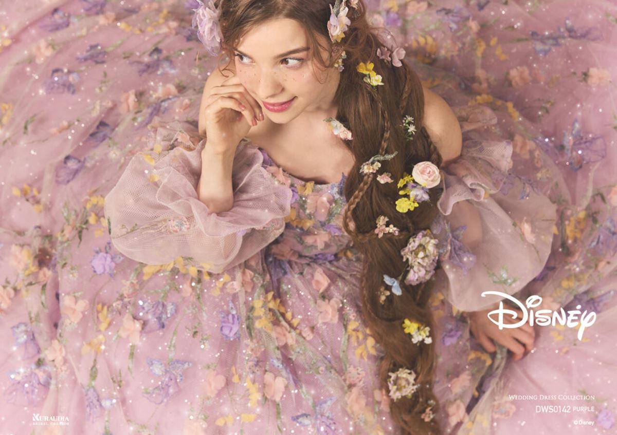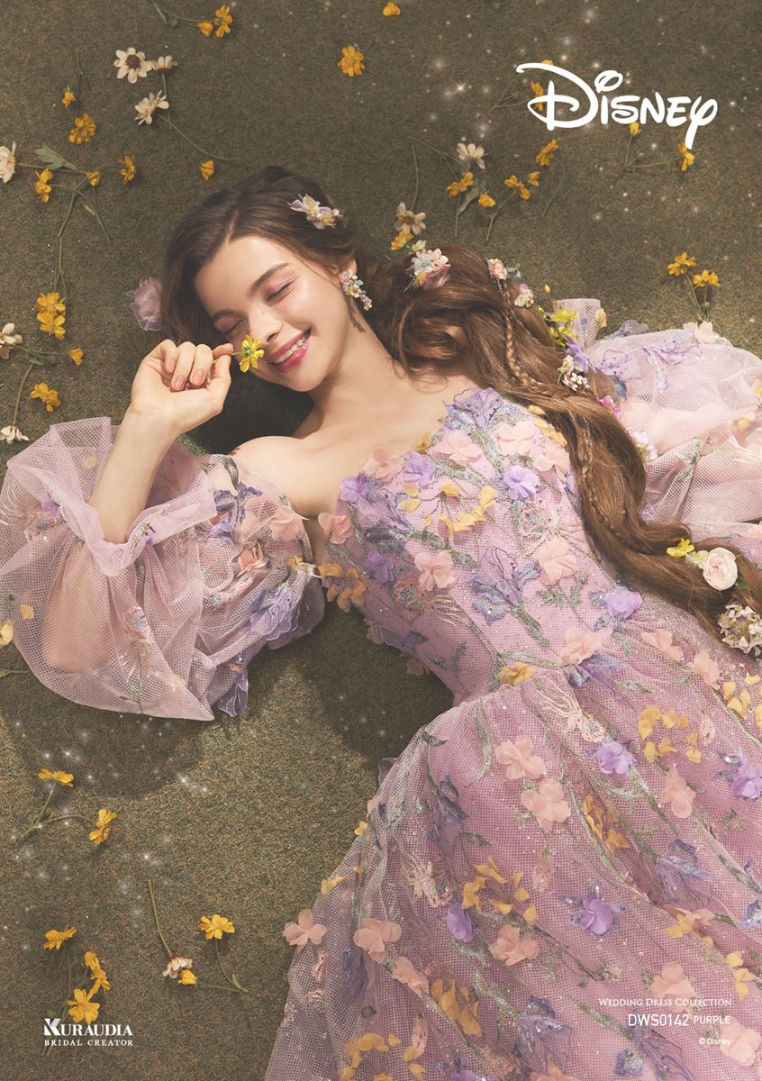 【クラウディア×ディズニー】ラプンツェルの世界観を纏う!淡いパープルが可憐で上品なウェディングドレスの魅力まとめ 画像(