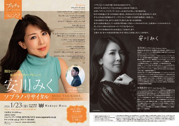 さまざまなジャンルの楽曲を自在に歌いこなす安川はこれから宗教曲にオペラと様々な舞台での活躍していくことだろう。今回のリサイタルは彼女の多彩さを存分に味わえるものとなるはずだ。