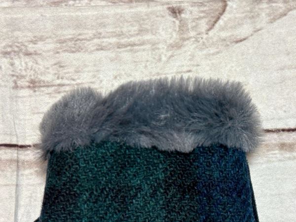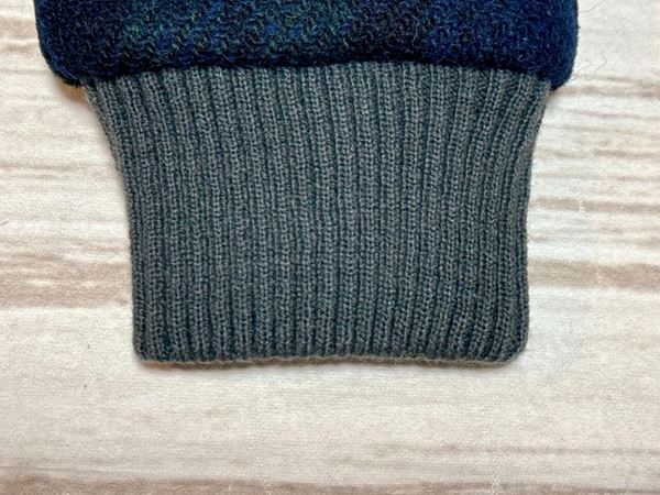 今回はグリーンを購入しました。表地/表側にハリスツイードの生地が用いられており、グリーンは定番的なグリーン×ネイビー、サックスは、サックス、オリーブグリーン、ブラウン、レッドなどのチェック柄です。
