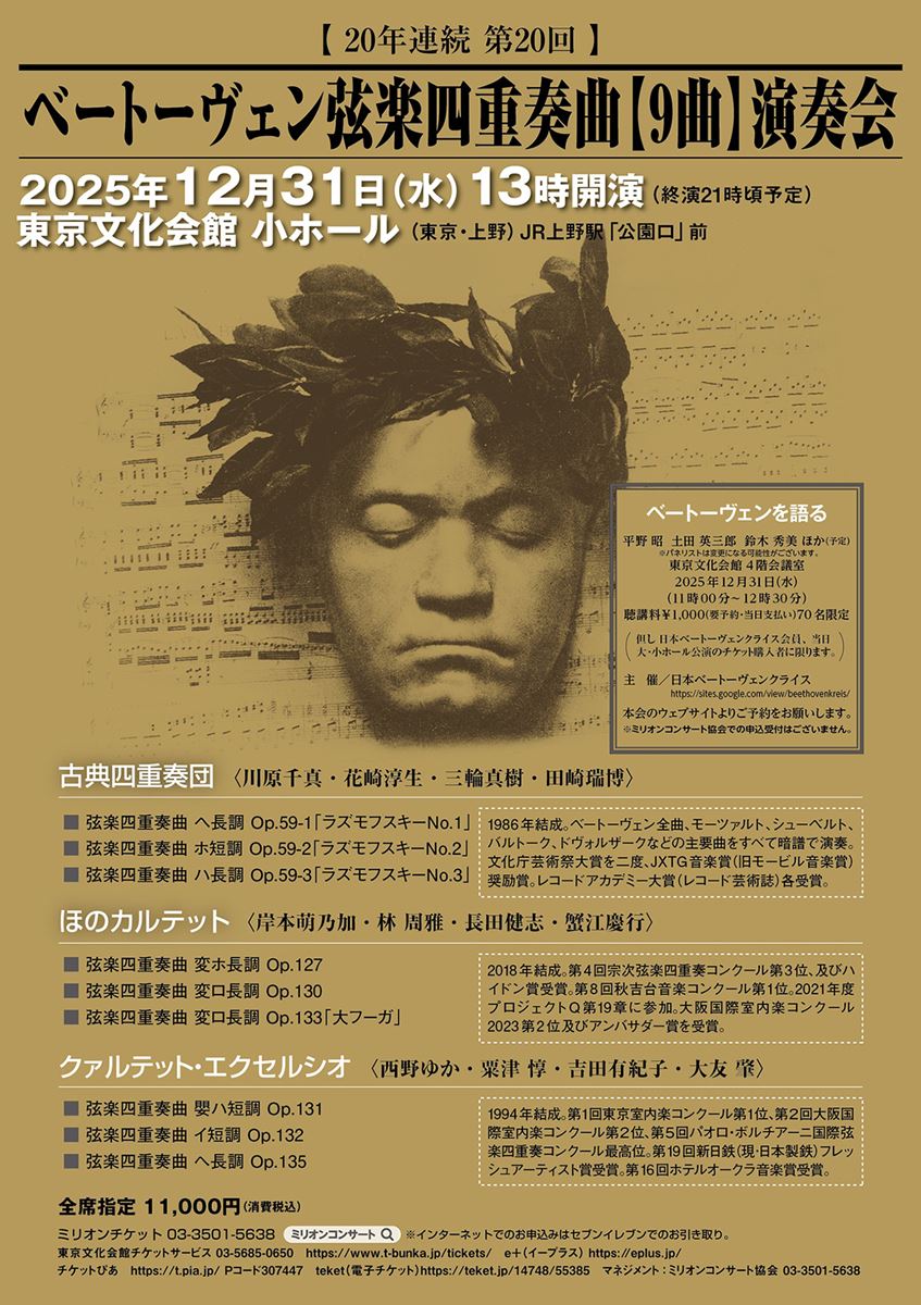 ベートーヴェン弦楽四重奏曲【9曲】演奏会