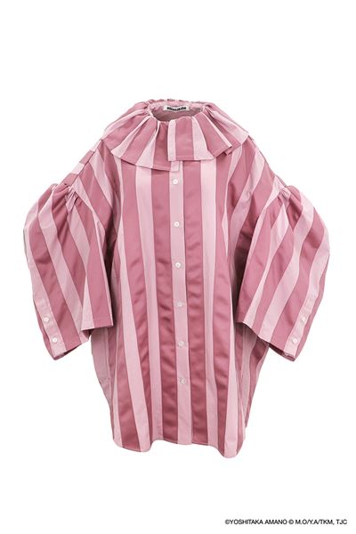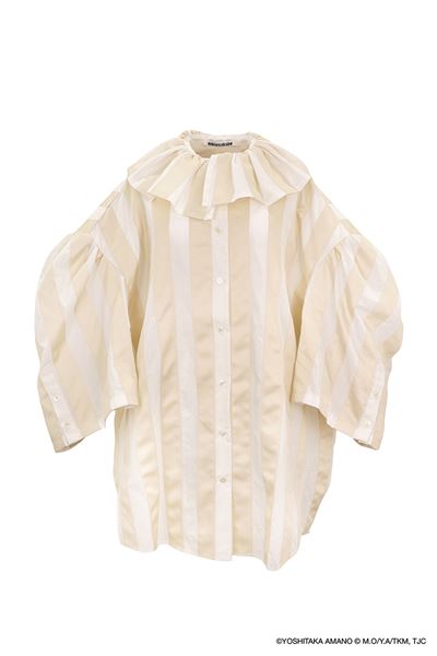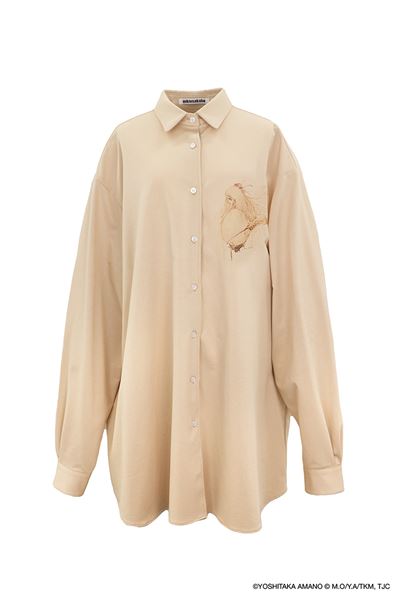 MIKIOSAKABEの坂部三樹郎は押井、天野のファンであり、原画の持つイノセントさや妖しさに強く惹かれたという。コレクションの半数に原画を採用し、原画に残されたカラーチャートをあえてデザインとして残すことで、絵の「生々しさ」や創作の痕跡そのものを取り入れている。作品と服飾の境界を曖昧にし、絵画的な世界を纏うようなコレクションとなっている。