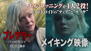 すべて見る現在公開中の映画『プレデター:バッドランド』より、エル・ファニングが一人二役を演じるアンドロイド姉妹“ティア”と“テッサ”にフォーカスした特別映像が到着した。