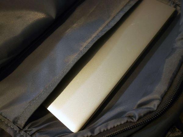 内部にはノートPCやタブレットを守るクッション入りポケットがあり、筆者の14インチのノートPCも余裕で収納できました!