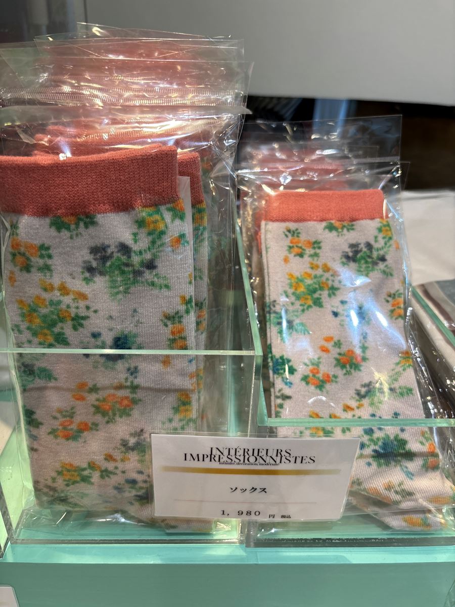 花柄のソックスは、ジェームズ・ティソ《L. L.嬢の肖像》に描かれている壁紙をモチーフにしたもの。コーディネートのポイントに取り入れてみて。
