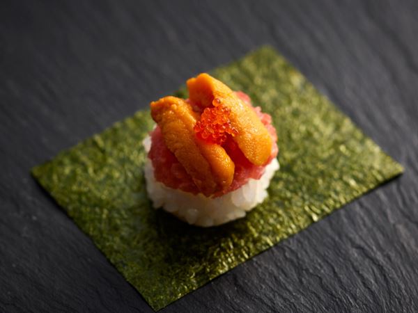 商品名:丸ズワイガニ握り、ふぐ握り、うに海鮮手巻き、炙りのどぐろ握り