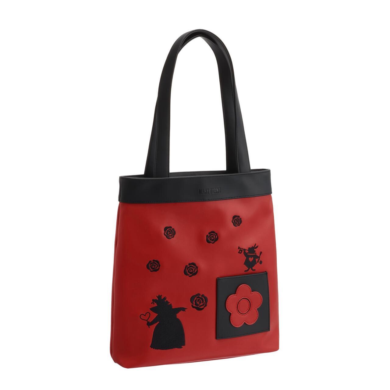 トートバッグには、マリークワントのデイジーモチーフと、クイーン・オブ・ハートと白うさぎのシルエットをデザインしています。