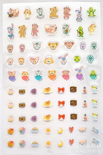 ダッフィーたち7人それぞれのお座りポーズ、立ち姿、足型(オルくんは甲羅)、お顔、ハート持ち。