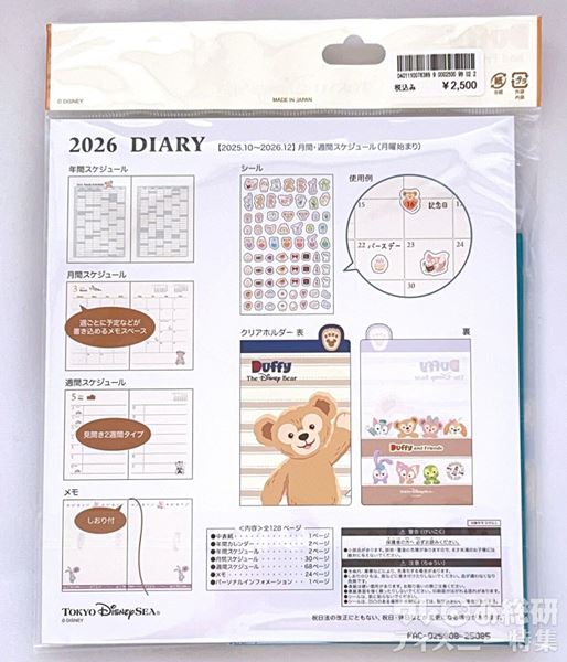 上には、「2026」のプレートを持ったダッフィー、ちゃんと表紙と同じブルーのプレート。