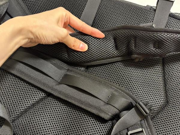 ショルダーベルトにはクッションが入っているため肩への負担も軽減。チェストベルトでフィット感も調整でき、使い心地まで配慮されたつくりです◎