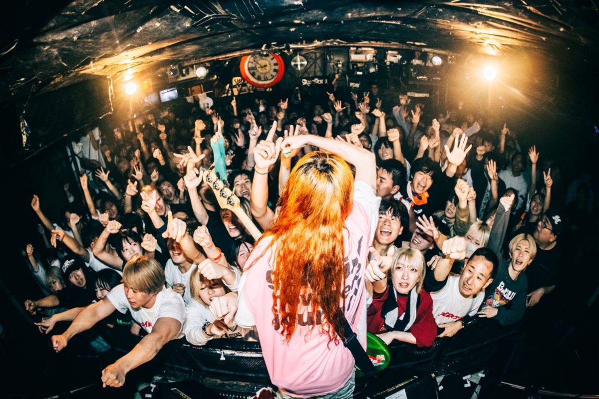 季節を先取りして《Can You Believe …》というフレーズも耳に残る「Jingle Bells」、寒くなったから暖めましょうか、と「SUMMER★」を鳴らすというシャレも効かせつつ、ニイナ(g/vo)の「何か、ワヤワヤしたくなってきたー!」という言葉から飛び出した「WAYA★WAYA」は観客のダンスとシンガロングが止まらない。10月も終わりに近づき、外はアウターに手が伸びそうな気温だが、SHELTERは観てるだけで汗が吹き出る、これぞライブハウスと断言できる状況でしかない。