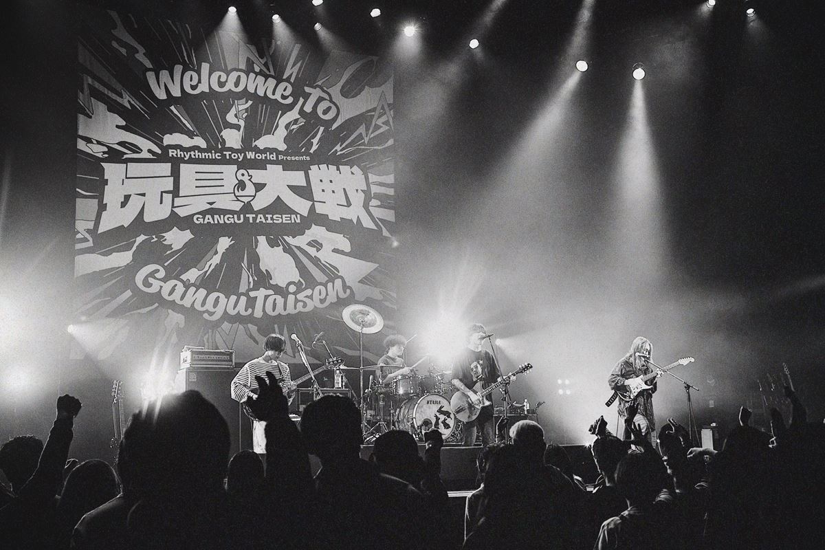 Rhythmic Toy Worldが、結成記念日である11月9日(日)に埼玉・ところざわサクラタウンで主催フェス『玩具大戦2025』を開催した。デビュー15周年イヤーを記念した昨年の同フェスを、一度きりの特別な祭典とすることを彼らは選ばなかった。理由はひとつではないと思うが、何よりメンバーのうち岸明平(g)と須藤憲太郎(b)の地元であり、いまやバンドそのものがホームタウンと認識する所沢の街でフェスを行うこと、そこに自らが惚れ込んだ仲間たちを呼ぶことが彼らにとっては何よりモチベーションであり、使命のようなものでさえあるのだと思う。そんな情熱が伝播し咲き誇った2年目の『玩具大戦』、熱演の数々を振り返っていこう。