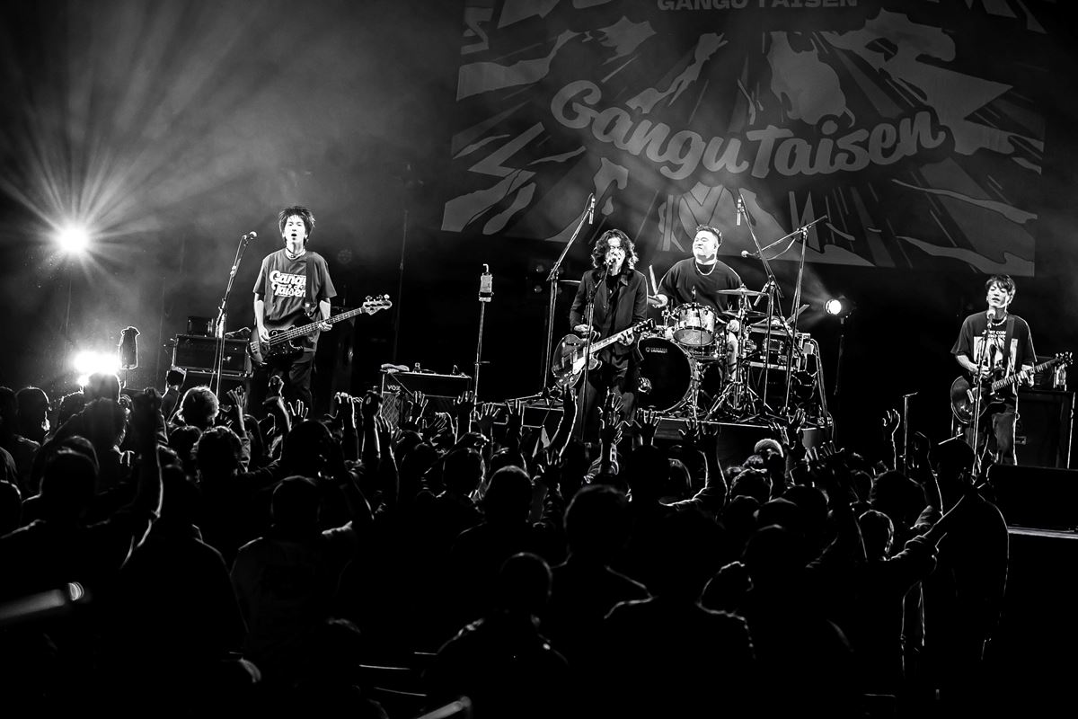 1曲目「箒星の余韻」から頼もしいほどパワフルでバンドサウンドを放つとともに、繊細でありながら随所に熱を滾らせる歌でも観客を惹き込んでいく。楽屋にあったリズミックからのメッセージに「人生の一部だと思ってる」と書いてあったことを明かすと「こっちのセリフ」だと返すMCでは相思相愛ぶりを発揮。そこから高津戸がシャウト混じりの熱唱を見せた「ゼロが見える」、渡辺雄司(b)がほとんどふたつ折りになって頭を振りながらプレイする姿が印象的だった「弱虫な炎」と、胸のすくようなアッパーチューンを2連発して場内を存分にあたため、最後は「応援歌」を披露。明るく照らされた場内に響く《大丈夫》《大丈夫だよ》のフレーズには思わず胸が熱くなった。