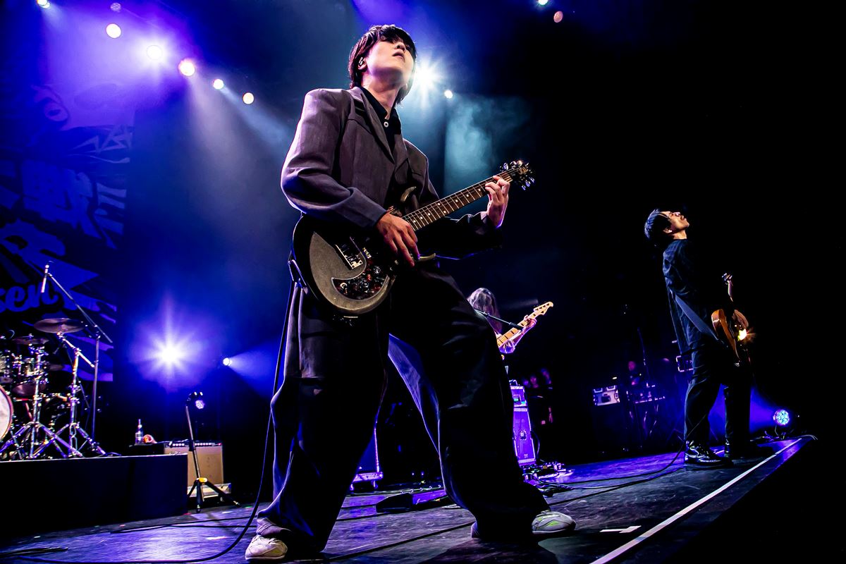 自分たちは一粒でも多く汗をかくことしかできないけど、それでも伝わってくる奴がライブハウスには揃ってる。そんな佐藤の言葉通り、誰よりも直情的で泥臭くて高純度のライブにフロアのボルテージも否応なしに上がる。清涼感と甘酸っぱさとエモーションを爆音でパッケージした「スーパーソニック」から、歌詞の随所にリズミックへのメッセージも散りばめながらの「テレキャスター」へ。曲中で叫んだ「あの時の打ち上げ代、2,500円が今、ところざわサクラタウンに繋がってる!!」はこの日随一のパンチラインだったのではなかろうか。ロックバラード「ヨルノカタスミ」でライブを終える瞬間まで自らの流儀を貫き通す姿に、撃ち抜かれた人も少なくないだろう。
