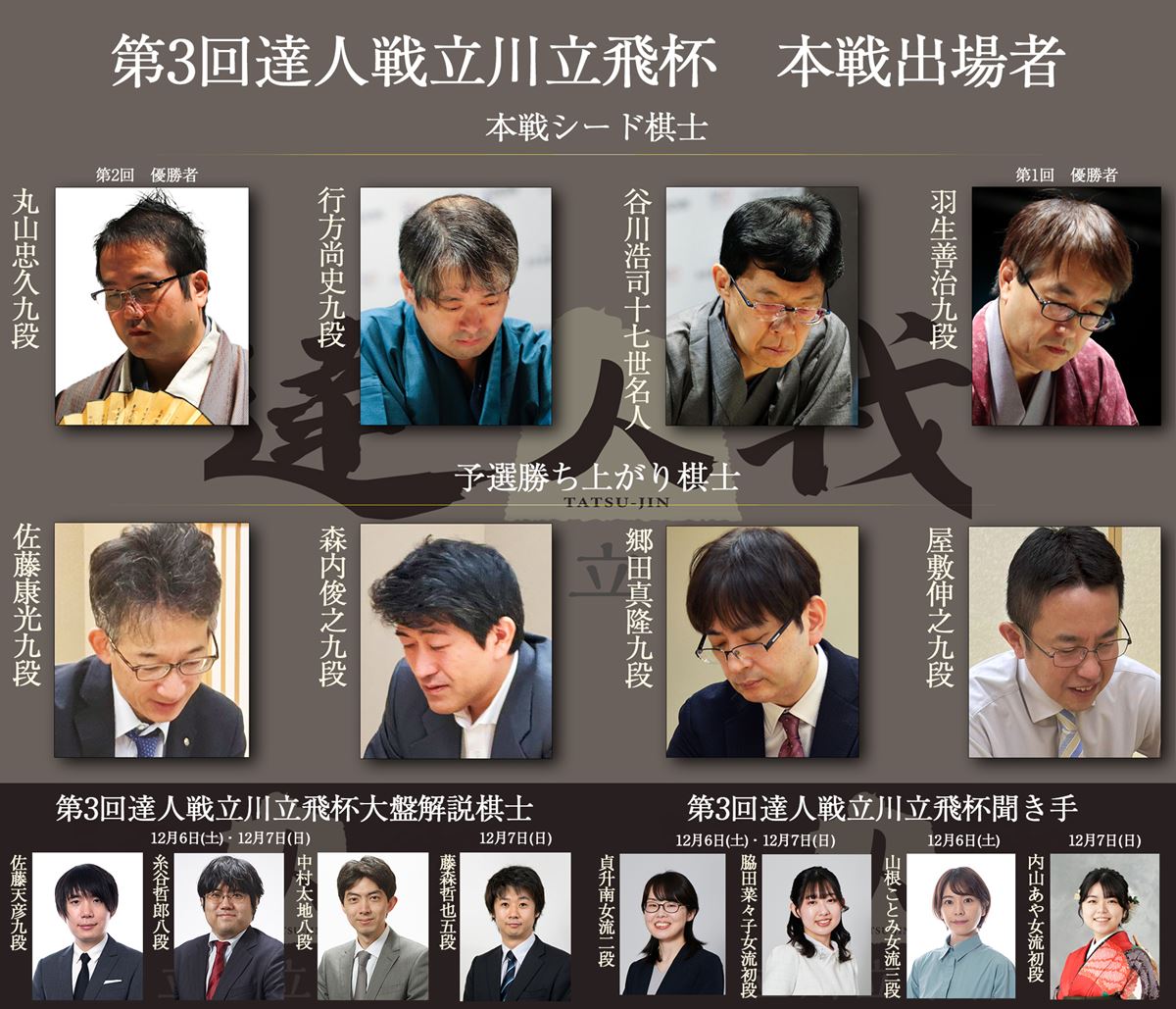 50歳以上の現役棋士が緊迫の戦いを繰り広げる『第3回達人戦 立川立飛杯』が、12月6日(土)・7日(日)にTACHIKAWA STAGE GARDENにて開催される。