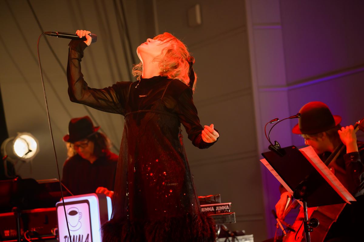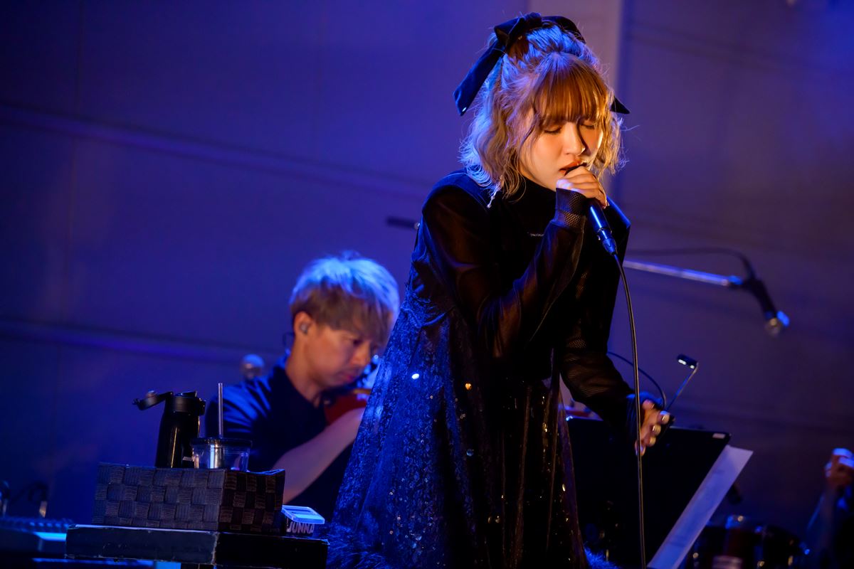 島田昌典の指揮に合わせ、チェロとヴァイオリンの演奏からスタートしたライブ、1曲目は「本当のことは言わない」。ストリングスの響きが美しく、スタンドマイクを使ったJUNNAも、大人な歌声を響かせていく。
