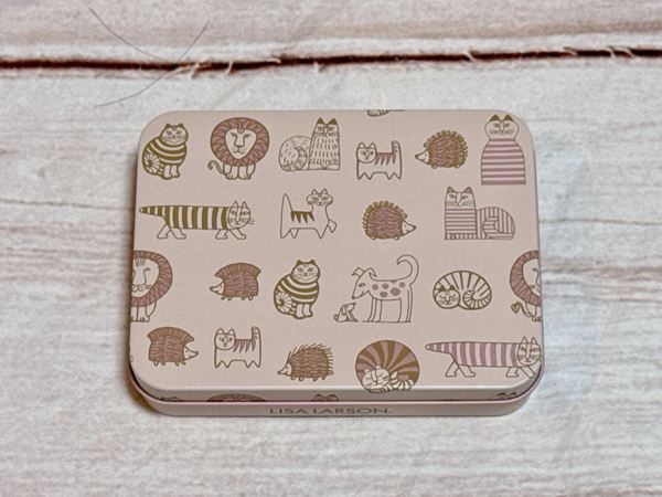 缶ケースにはリサ・ラーソンのマイキーやはりねずみ3兄弟ほか、愛らしいキャラクターが大集合!