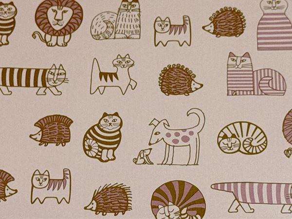 ベージュカラーにグレーでリサ・エラーソンの描くかわいい猫たちのイラストがプリンをされており、猫好きにはたまらないデザイン。差し色的に使われているイエローカラーもおしゃれです。