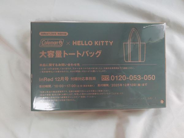 宝島社から11月7日に発売された雑誌『InRed』12月号の付録は、Coleman(コールマン)×ハローキティの「大容量トートバッグ」です。