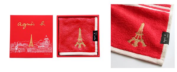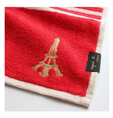 タオルハンカチにはスパンコールで表現されたエッフェル塔のモチーフをあしらい、フレンチシックな世界観を楽しめる一枚に仕上がっています◎