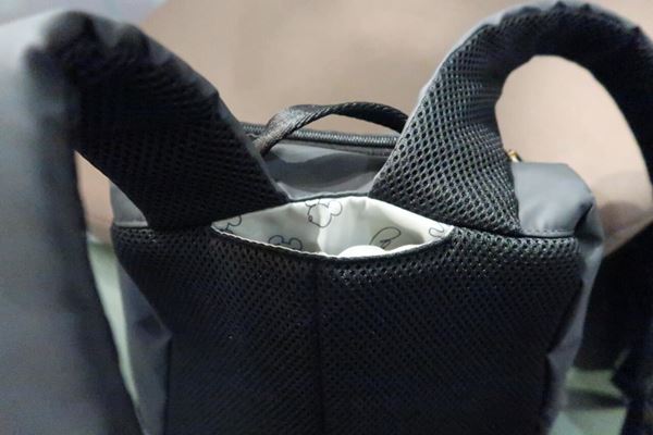 本体内側のほかにも、両脇にもポケットがついていて、ここにはペットボトルを入れることが可能。