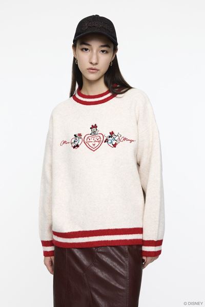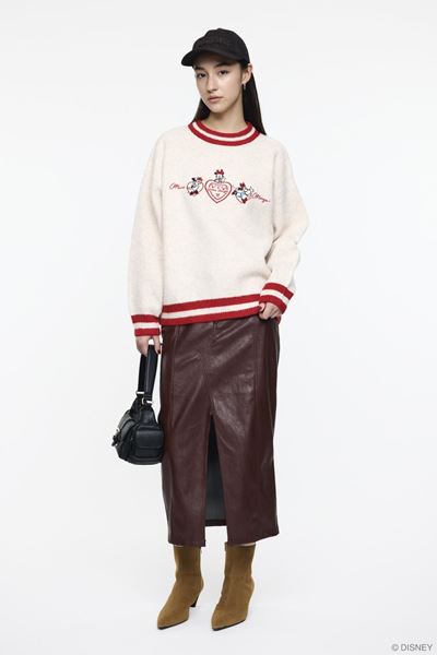 ニットカーディガンは、ノルディック調の編み立てでミッキーを落とし込んだデザイン。