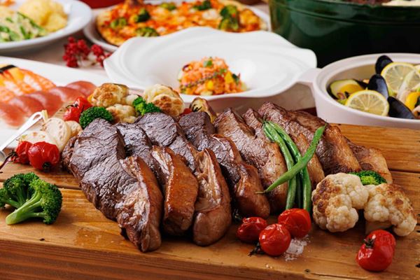 こちらのブッフェでは、ライブキッチンで調理される国産牛のビーフステーキをはじめ、注文を受けてから調理する揚げたての天婦羅、目の前で一貫ずつ握るお寿司、冬にぴったりの牛肉の赤ワイン煮込みとマッシュポテト、旨味たっぷりのシーフードのレモン鍋など、多彩な料理を堪能することができます。