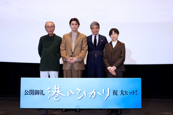 すべて見る現在公開中の映画『港のひかり』の公開御礼舞台挨拶が、11月26日に新宿バルト9で開催。舘ひろし、眞栄田郷敦、尾上眞秀に加え、撮影を務めた木村大作キャメラマン、MCの伊藤さとりが登壇した。