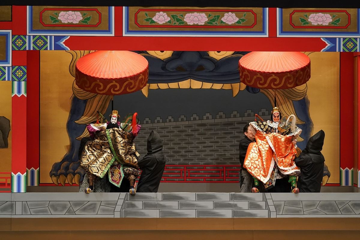 後半は、近松門左衛門作の『国性爺合戦(こくせんやかっせん)』の名場面、 「楼門」「甘輝館(かんきやかた)」「紅流しより獅子が城(べにながしよりししがじょう)」を上演。日本と中国を舞台にした壮大なスケールで描いた本作は、そのドラマティックな展開と異国情緒の物珍しさから、初演当時17カ月におよぶロングランを記録した作品だ。