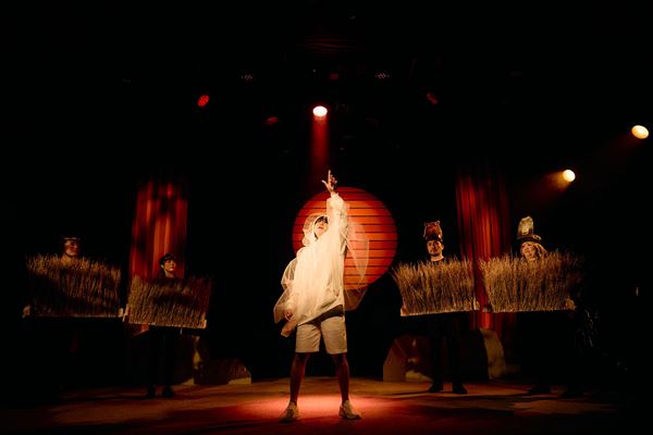 出演者それぞれに見どころは多いが、なんといってもやはり原田優一にもっていかれる。くど過ぎてしまう一歩手前にとどまるコミカルな表情や動き、歌声は、バランス感覚の見事さがあってこそ。この作品が高いレベルで成立しているのは、この人あってのものだろうと思わせる。もちろん原田以外の9人も素晴らしいのだが、中でも杉田未央の貢献を忘れてはいけないだろう。自身も舞台音楽などを手がけている作・編曲家であり、本作では稽古場ピアノとしてキーボードを弾くほか、鍵盤ハーモニカやパーカッションなども演奏。音楽監督として演出家の矢部に鋭いツッコミを入れる場面や、『ajabu』のステージ上に登場する場面もあり、大きな存在感が印象的だった。劇中劇の『ajabu』は、ファミリーミュージカル的な仕立てにぴったりの終幕を迎える。そして本作自体、出演者も観客も思いきり笑顔で終わり、幸福感にあふれた良作だ。