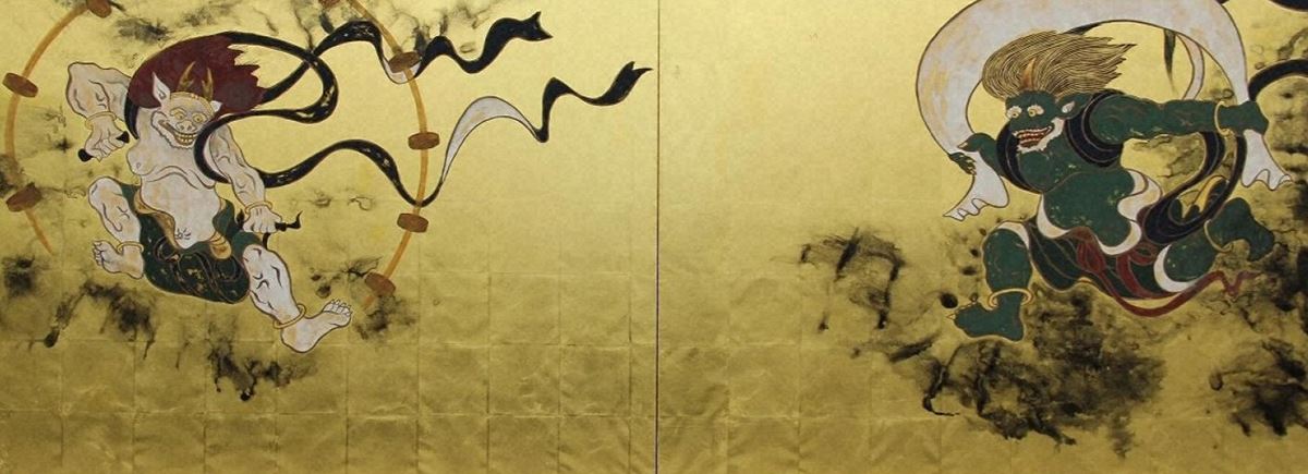 さらに同展では、霊獣で神として祀られる龍や、現世利益を司る七福神の寿老人、自然の力を神格化した風神・雷神まで、神仏のユーモラスな姿にも焦点を当てる。岡田美術館といえば、現代美術家・福井江太郎が制作した美術館正面を飾る風神・雷神の巨大壁画《風・刻》が有名だが、その1/10の貴重な小下図なども展示する。