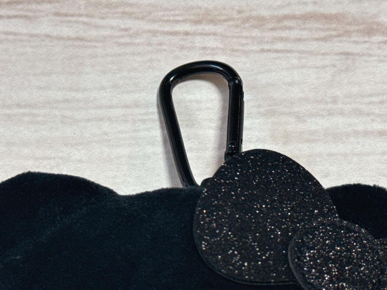 リボンはPVC素材で高級感も◎。カラビナもブラックで統一されているので、馴染みやすい点もGoodです。