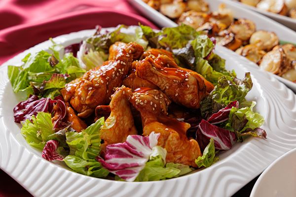 コチュジャンベースの甘辛だれを、手羽元肉にたっぷり絡めた一品。