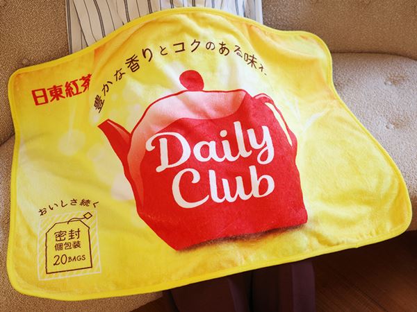 デイリークラブのパッケージデザインが印刷されたブランケットが入っています。裏面はポットのランダム柄がデザインされています。