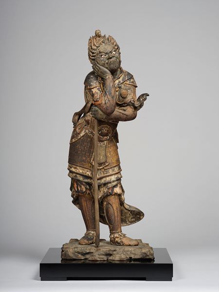 同展ではまず、浄瑠璃寺旧蔵の《十二神将立像》全9躯を、2期に分けて紹介。十二神将は古くから、時間や方位を司る十二支と強く結びついており、「子=ネズミ」「丑=ウシ」「寅= トラ」と関連づいた神将たちの、ユニークなポーズも見どころだ。今回はそうした十二神将像の造形を堪能するとともに、2026年が午年であることにちなんで、唯一明快な図像典拠が存在しない旧浄瑠璃寺の午神像の図像の謎にも迫る。