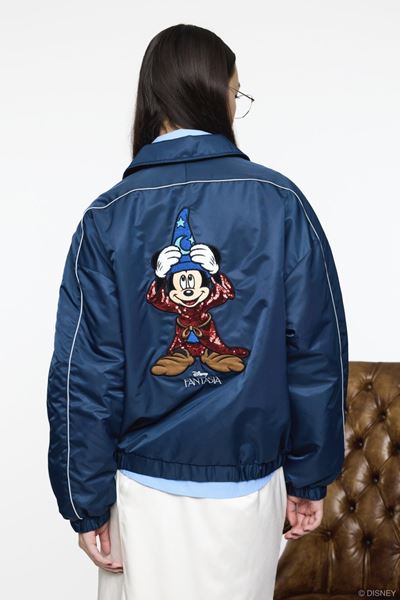 ナイロンジャケットには、スパンコール刺繍を取り入れ、キラキラと輝きます。