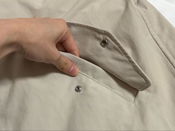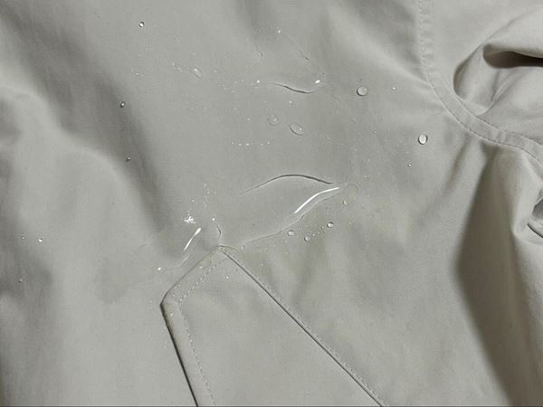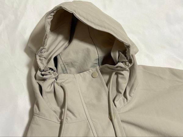 撥水加工が施されているのも嬉しいポイント。実際に水を垂らしてテストしてみましたが見事にはじき、内側が濡れることはありませんでした。急な雨でも安心!フードも付いているので、傘を持っていないときにも活躍してくれますよ。