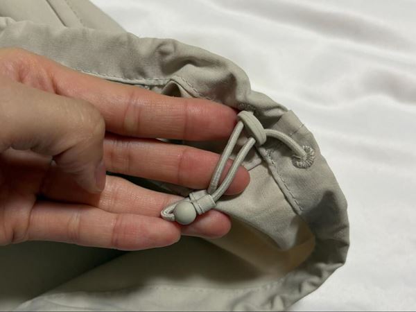 アジャスターは内側にあるので、紐も含めて外から全く見えないのも嬉しいポイントです。ただし、少しアジャスターが固く、調整しづらいのが個人的には難点でした。