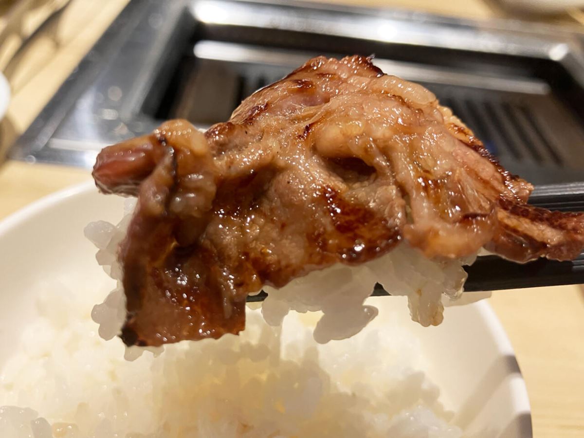 「牛タンカルビ」は、適度な噛みごたえがあり、噛むたびに肉汁がジュワ~!お肉の味が濃い。