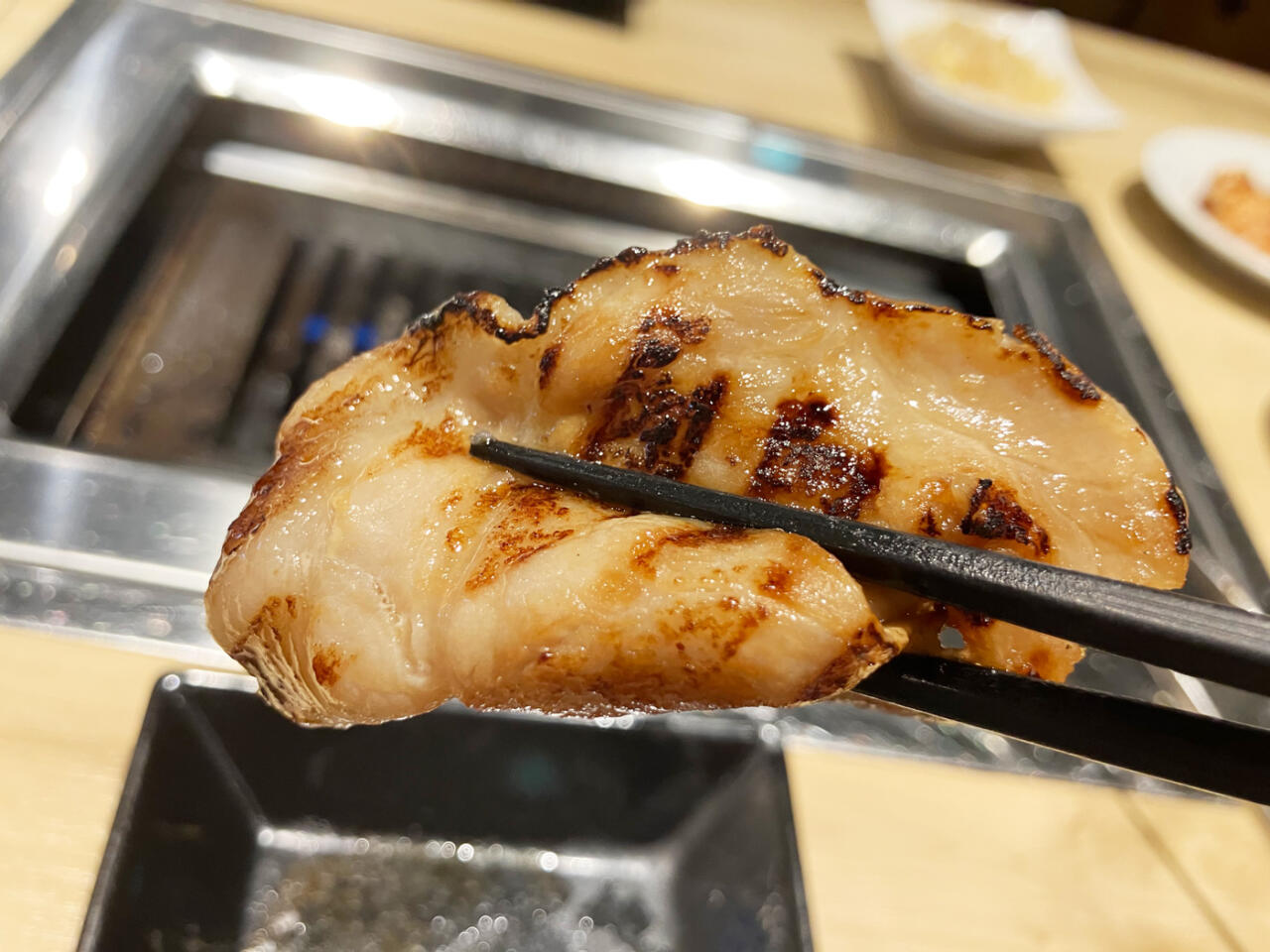 大判なのでひと口で頬張ると、口じゅうが神戸ポークの濃い旨みで満たされる! こんな上品かつ強烈な旨みの豚肉あるのか…! どんな調理でも美味しいのだろうけど、焼肉で食べるからこそ旨みがより凝縮している感じもします。