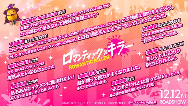 『ロマンティック・キラー』鈴木敏夫、小島秀夫、井上裕介(NONSTYLE)ら各界の著名人からコメントが到着