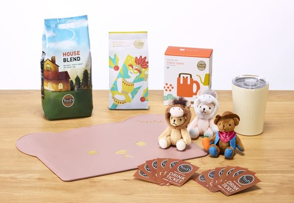 ほかにも、鳥獣戯画の動物たちをデザインしたかや生地ふきんや、手軽に本格的な味わいを楽しめる定番シングルサーブ5種などを詰め合わせた「2026 HAPPY BAG オンラインストア限定Bセット」 6,500円(税込)、円すいタイプのV60ドリッパーとサーバーのセット、3種類の限定コーヒー豆などハンドドリップを始める方にぴったりな「2026 HAPPY BAG オンラインストア限定Cセット」10,000円(税込)、ベアフルのフェイス型フラップケースやタリーズロゴ入りカップタンブラーや限定コーヒーがセットになった「2026 HAPPY BAG オンラインストア限定Dセット」10,000円(税込)もあります。